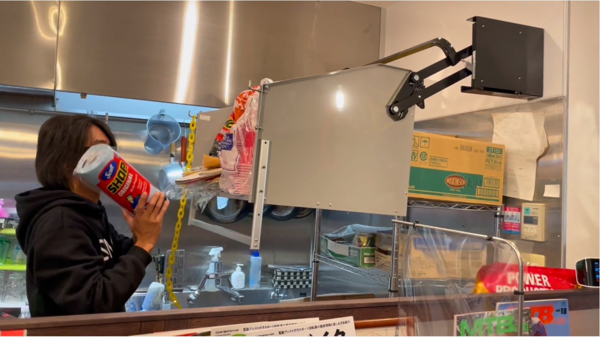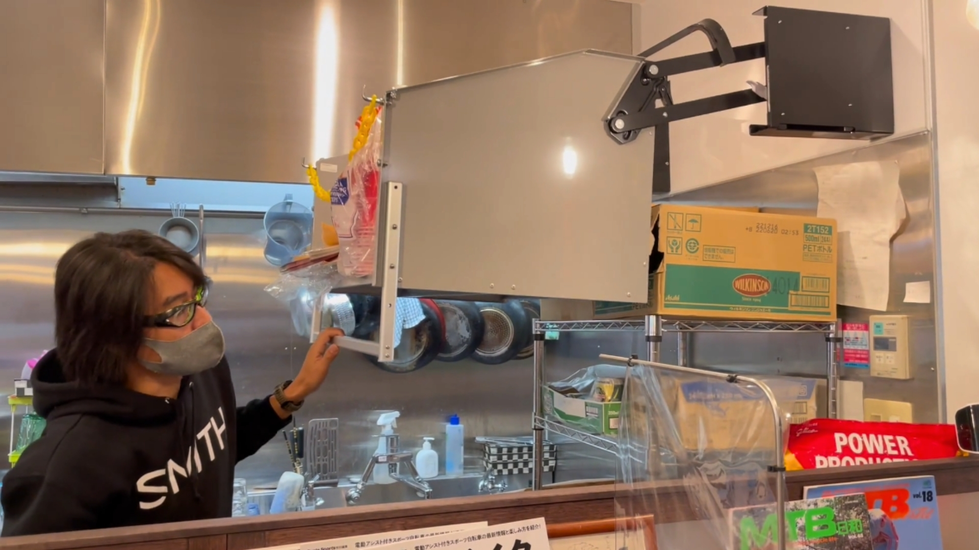 ・収納物の出し入れを楽にしたい。上記のことを考えていたところ、当社の製品を発見。シンク横で使い勝手の良い場所が、デッドスペースになっていましたが、業務用エレベスイングを設置することで、有効活用できるようになりました。