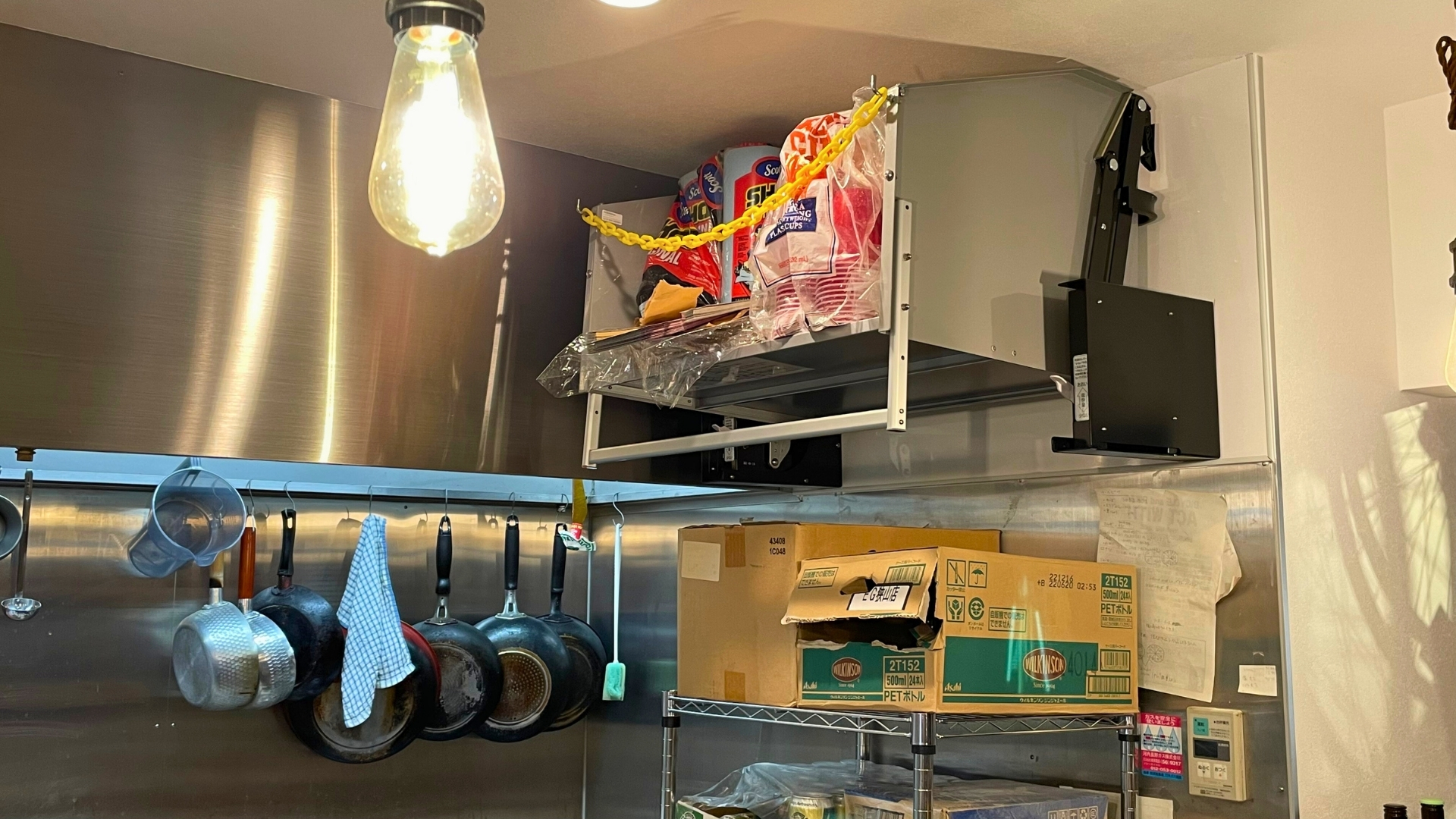 ・厨房スペースはあまり広くはない為、上部の空間を有効活用したい。