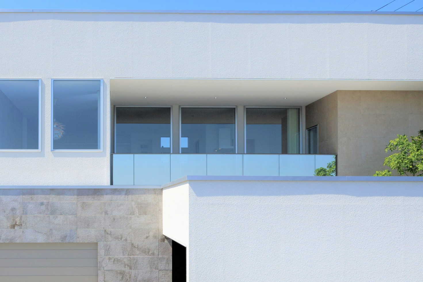 どちらも高いデザイン性を持ち、どんな建物にも自然に調和します。ガラスの透明感と格子の整ったラインが融合することで、外観全体に統一感が生まれ、上質で洗練された印象を与える仕上がりとなりました。バルコニーをよりオシャレな空間へと引き立てます。