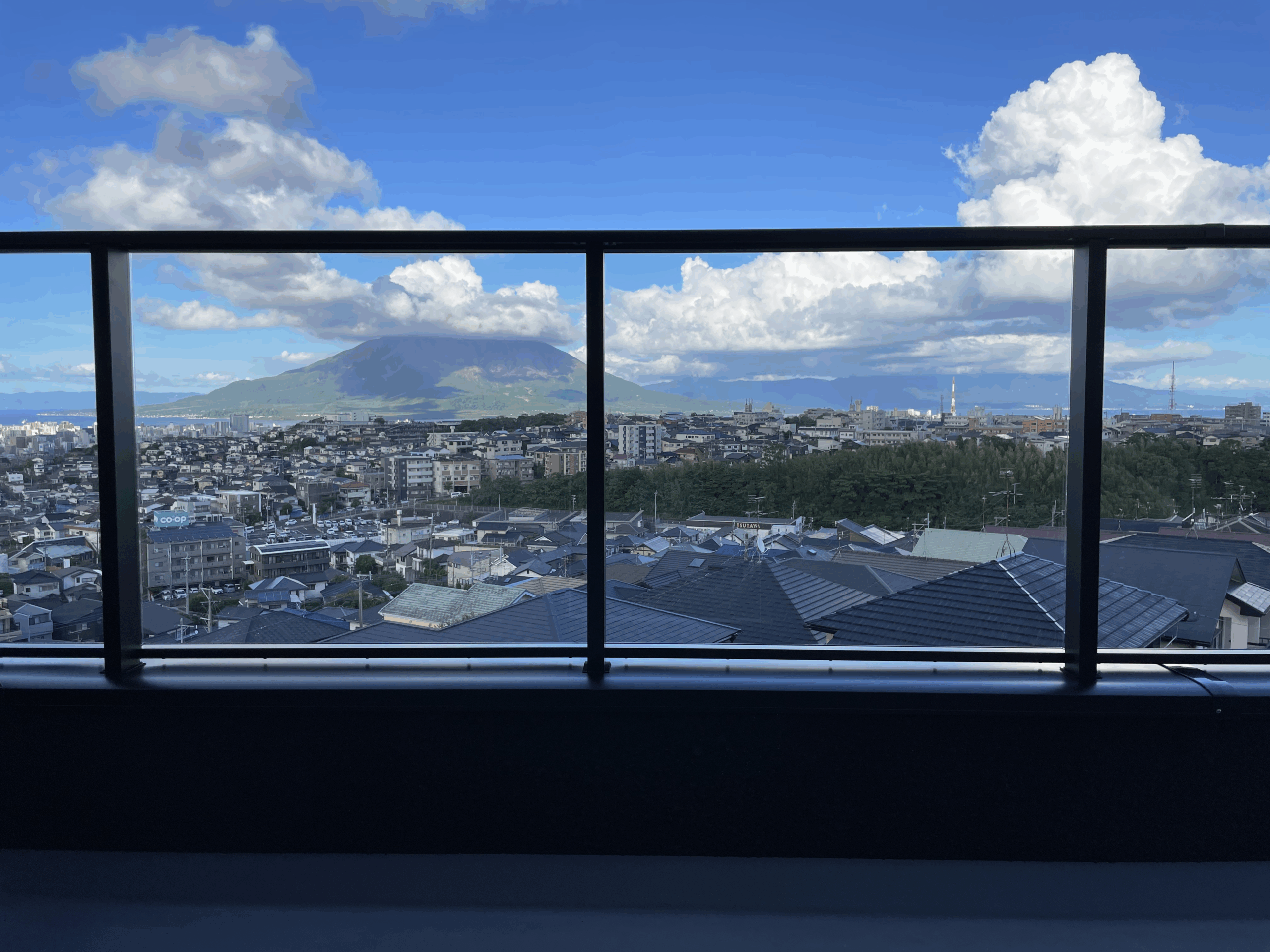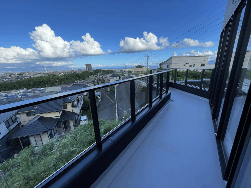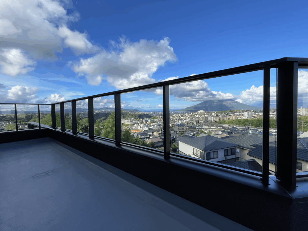 |桜島を望む景色を引き立てる、開放感あるバルコニー手すり