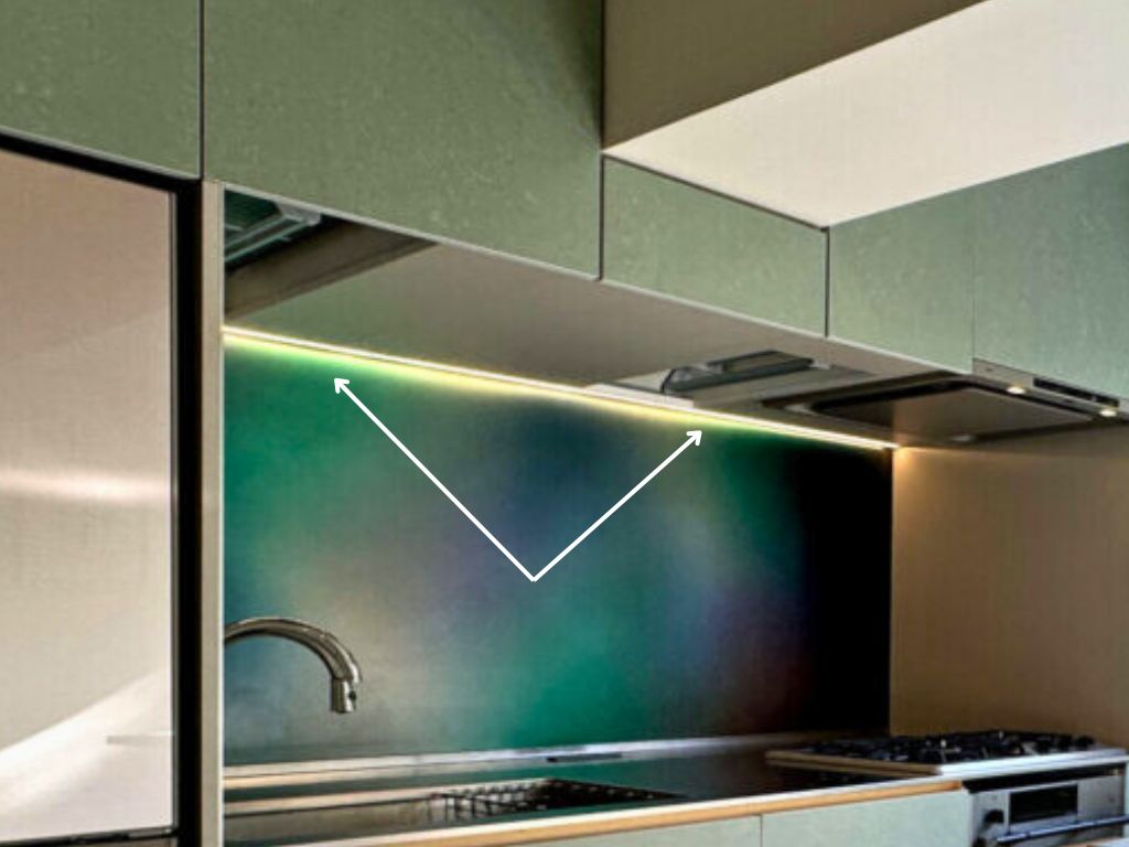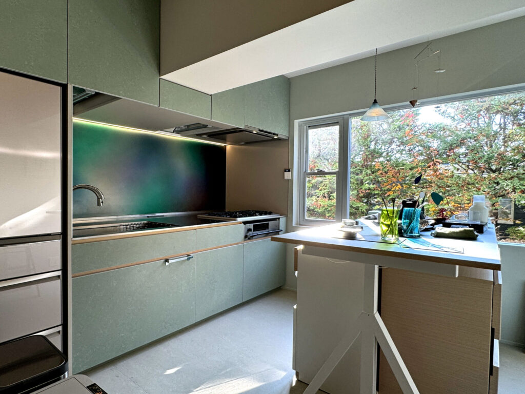 - 「吊戸棚の地板にラインを出したくなかったので、スッキリした納まりとデザインに大満足しています」 オーダーキッチンの美しさを追求される中で、ノイズのない洗練された仕上がりを特に喜んでいただけました 。