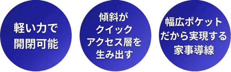 手前に傾く、驚きの軽さ。blumレール対応ポケット収納