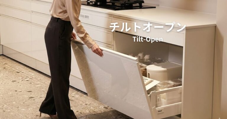 特殊な”傾ける”機構が、引き出しを開ける際の初期負荷を50%減。指一本でも開けられるスムーズな操作感で、毎日の家事負担を劇的に減らします。